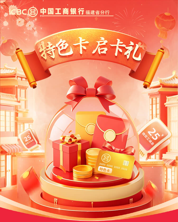 - 本次活动仅限活动期间新办并启用福建工商银行(不含厦门市工行)特色借记卡的客户可参与。同一银行卡卡号、身份证、微信账户、手机号以及同一终端设备,满足其中任意条件均视为同一客户,同一客户办卡后限领一张立减金。奖品有限,先到先得,发完即止。